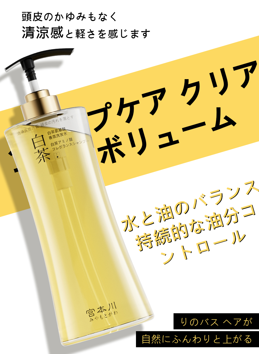貴重な白茶エキスと温和なアミノ酸系界面活性剤を完璧に融合させ、頭皮と髪に奢らかなケア体験を届けます。